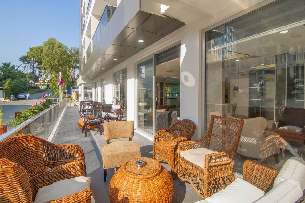Собствена част от градски пясъчно-чакълест плаж, дълга 50 м. Хотелът има открит басейн с водна пързалка.