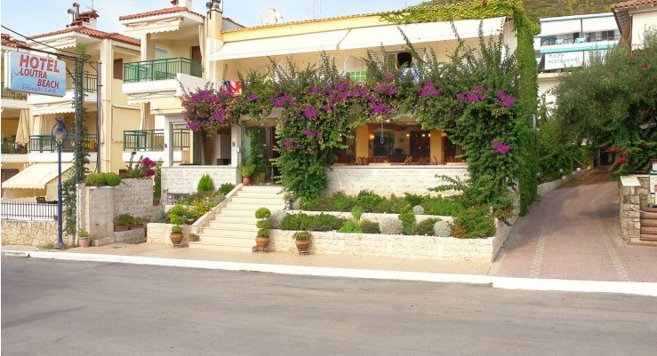 Описание Местоположение: Loutra Beach Hotel се намира на 105 км от летище Македония, на 10 км от селището Пефкохори, в курортната зона Лутра на селището Агия Параскеви на ръкава Касандра в Халкидики, на брега на морето. Настаняване: Loutra Beach Hotel разполага с общо 22 стаи за гости. Всички стаи са оборудвани с климатик, сателитна телевизия, хладилник, телефон, баня с душ, сешоар, балкон или излаз към градината. Храна и напитки: Loutra Beach Hotel разполага с един основен ресторант, трапезария за закуска и бар. Удобства и забавления: Loutra Beach Hotel предлага възможност за отдих и забавления във фитнес зала, турска баня и сауна. Wi-Fi интернет е наличен в публичните зони на хотела и в някои от стаите без допълнително заплащане. Хотелът разполага с безплатен частен паркинг. Плаж: Loutra Beach Hotel се намира на 30 м от пясъчен плаж. Чадъри и шезлонги на плажа - срещу допълнително заплащане.