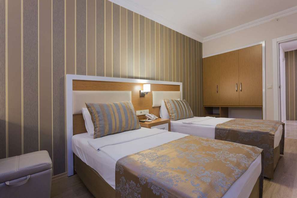 Хотелът се състои от 3 корпуса, в които са разпределени 58 стаи. Те са оборудвани с климатик, сателитна телевизия, телефон с директно избиране, минибар, сейф, безплатен Wi-Fi, детски креват, баня с душ, сешоар и балкон. Ежедневно почистване на стаите. Смяна на спалното бельо – 3 пъти в седмицата. Всяка стая е с балкон с изглед към града.