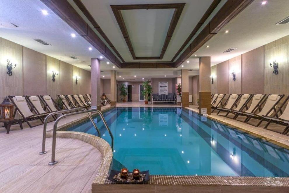 Ресторант, лоби бар, вътрешен басейн с 31 градуса t на водата, 2 сауни, фитнес зала, масаж, открит басейн със зона за релакс, шезлонги, чадъри, ски гардероб, туристически офис, сейф, безплатен Wi-Fi и паркинг.
