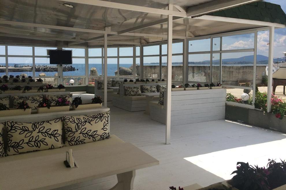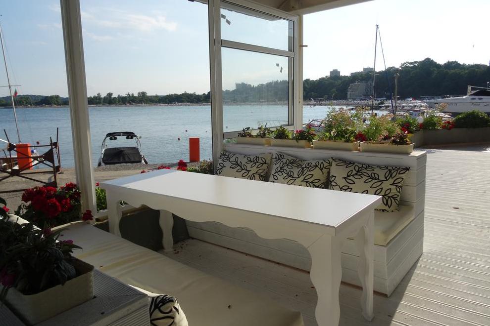 Ресторант с открита тераса с изглед към яхтения кей. Разполага и с лоби бар.