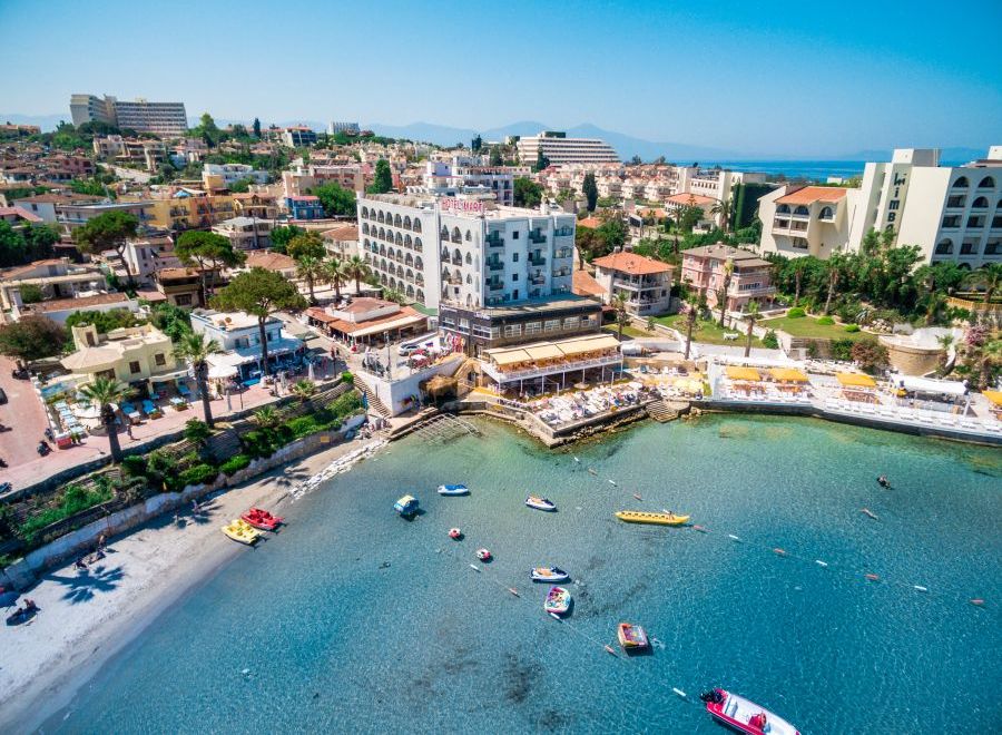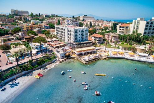Marti Beach Hotel се намира на 125 км от летище "Милас", на 2 км от центъра на Кушадасъ, на брега на морето, на популярния Ladies Beach. Посредно хотелът е реновиран през 2019 г.