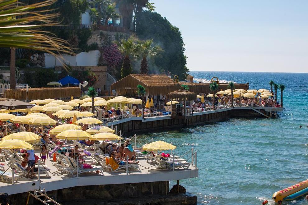 Marti Beach Hotel се намира на собствен пясъчен плаж на Ladies Beach, платформа. Чадъри и шезлонги на плажа - безплатно.