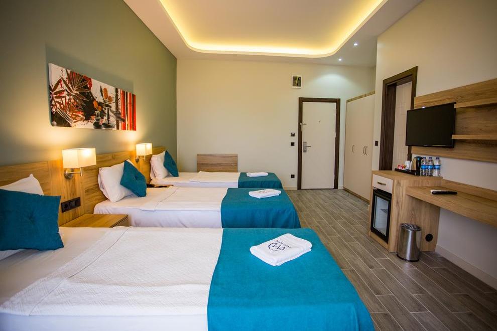 Marti Beach Hotel разполага с общо 117 стаи за гости, оборудвани с климатик, LCD TV, телефон, минибар (платен), сейф, баня с душ, сешоар, балкон. По-голямата част от стаите са с гледка към морето. Стаите се почистват всеки ден, спалното бельо се сменя 3 пъти седмично.