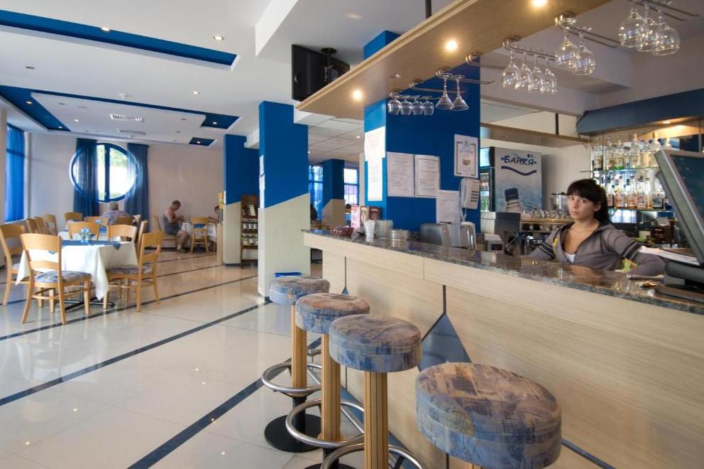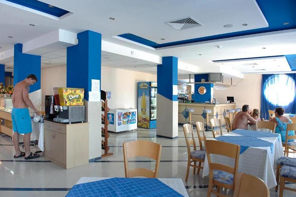 Закуската се сервира на шведска маса в ресторанта на хотела. През останалата част на деня ресторанта работи на свободна консумация с богато и вкусно меню на достъпни цени – маси има и около басейна. Барът разполага с коктейли и разхладителни напитки за всеки вкус.