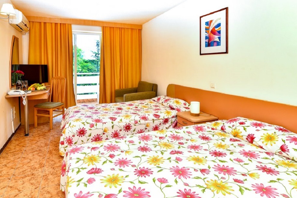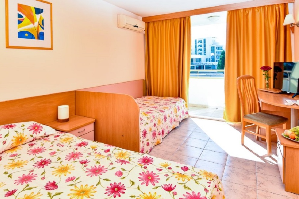 Хотел Оазис 2* разполага с климатизирани и уютно обзаведени стаи в четири корпуса, най-високият от които е 5-етажен с панорамен асансьор. Хотелът работи по формулата All Inclusive. Стаите са уютно обзаведени със спалня 140х200 см или две единични легла 100х200 см. Част от стаите разполагат и с допълнителен разтегателен фотьойл, като съответно са подходящи за двама възрастни и едно дете или един възрастен с две деца. Изгледът е към вътрешния двор, басейна или търговската улица. При поискване може да използвате ютия и дъска за гладене. Срещу допълнително заплащане хотелът предлага използване на сейф на рецепцията.