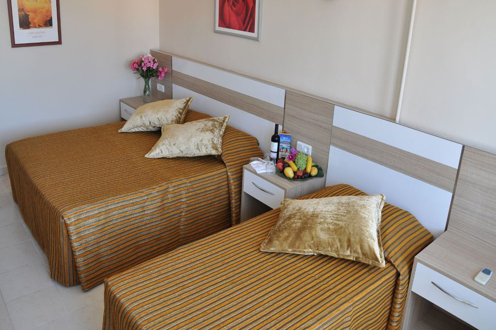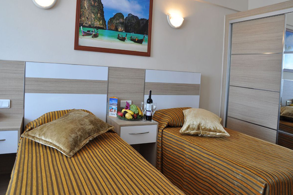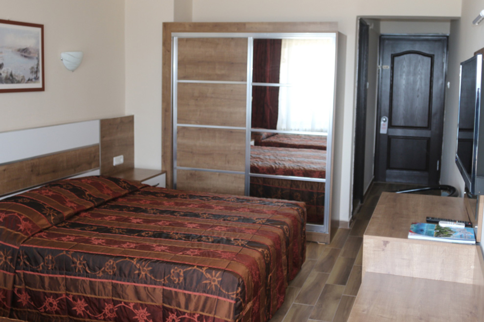Хотелът посреща гостите си в Standart room и Family room. Всички стаи са оборудвани с климатик, телевизор, телефон, баня с душ, сешоар, балкон (тройните стаи не разполагат с балкон). Стаите се почистват всеки ден, спалното бельо се сменя 3 пъти седмично.