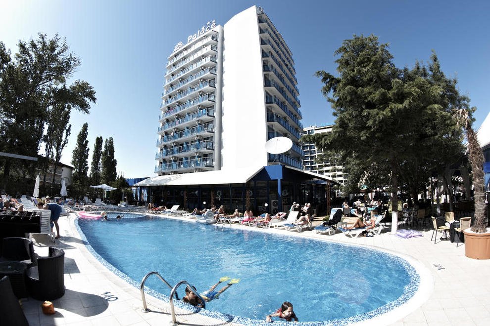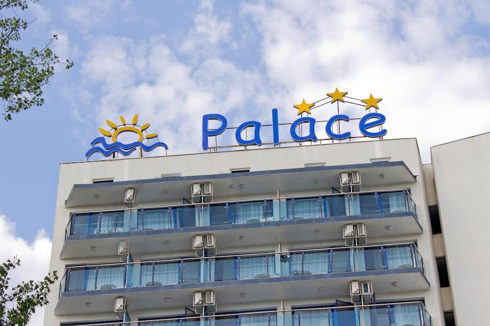 Хотел Палас е разположен на самият морски бряг и в близост до всички атрактивни места в комплекса. В близост до безплатния транспорт към двата аквапарка, на минути от най-голямото казино в комплекса и 5 звездният Хелънс СПА център, мини голф и волейбол игрища, детски площадки.