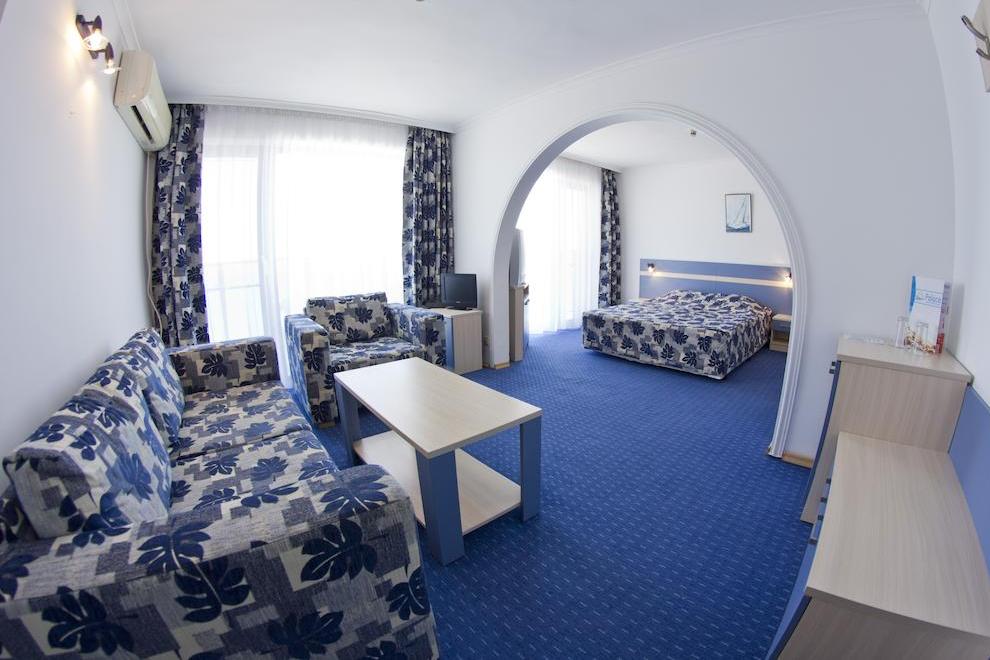 Хотел Палас разполага със 143 стаи, от които 11 апартамента. Стъклената стена от към терасата и небесносиният прозрачен парапет не прикриват никаква част от чудесния изглед към силуета на морския залив, включително добре известните забележителности на Несебър , Свети Влас и яхтеното пристанище. Всички стаи са с морски изглед и са оборудвани с минибар с избор на безалкохолни и алкохолни напитки, бира и вода, LCD телевизор. Персонална климатична система и тераса.