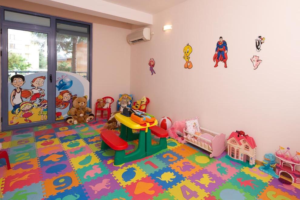 Обособеният детски кът е със самостоятелни баня и тоалетна. Той е идеален за малки деца и предлага голямо разнообразие от детски игри и забавления, докато родителите са на плаж или разходка.