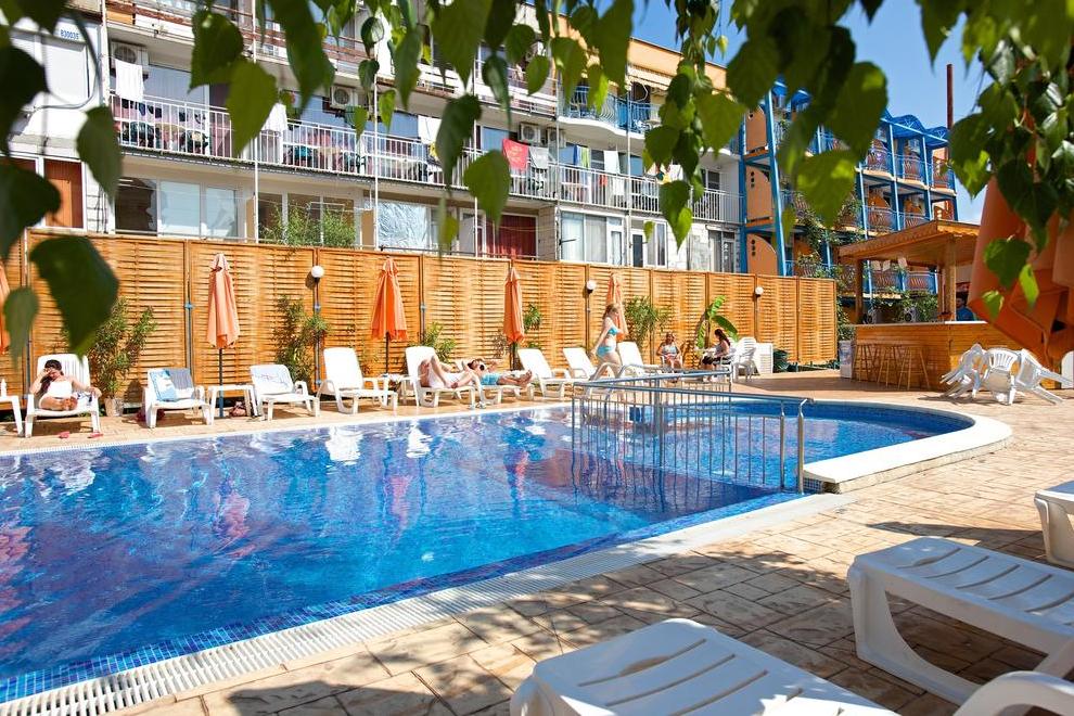Хотелът има външен басейн, където шезлонгите и чадърите се ползват безплатно.