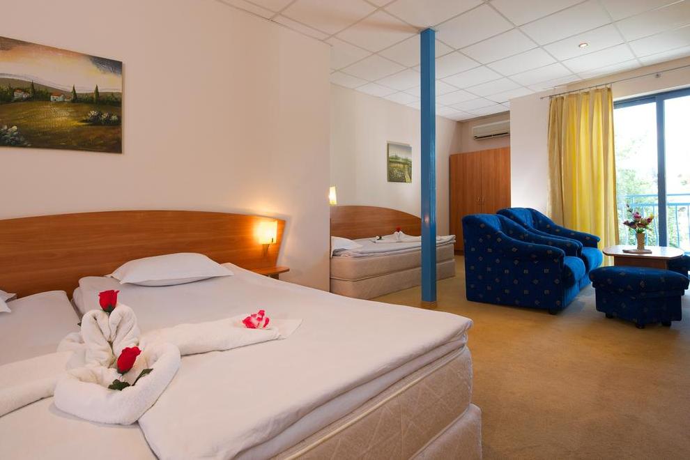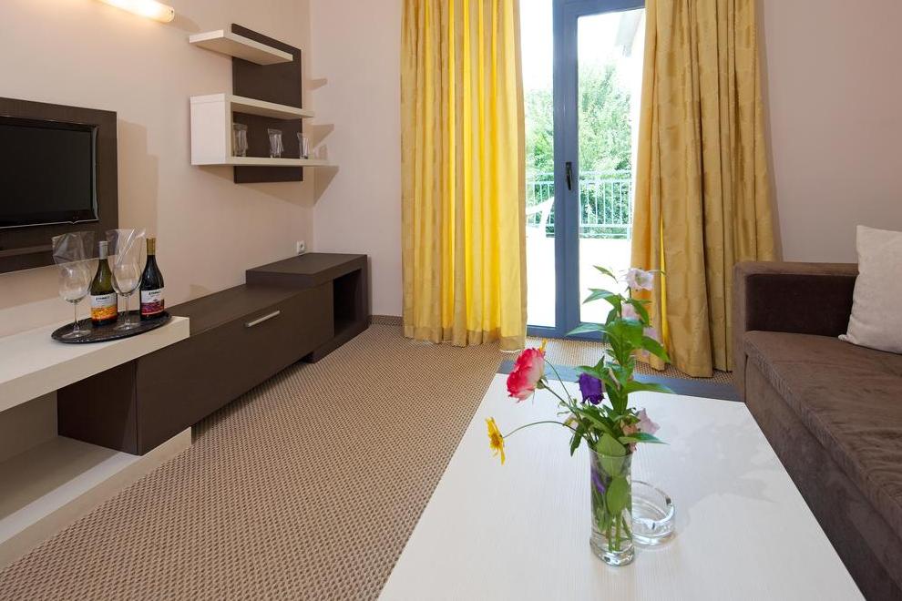 Хотелът предлага модерно обзаведени двойни стаи, студиа и апартаменти. Всички те разполагат с кабелна телевизия, минибар, климатик, тераса, тоалетна и баня. Стандартната стая предлага удобно настаняване за двама. При предварителна заявка и запитване на рецепция някои от тях позволяват настаняване на допълнително легло за дете или възрастен. Има възможност за ползване на двойната стая като единична. Има 2 апартамента с отделна спалня и хол с повече място за отдих и голяма веранда. Освен двама възрастни в спалнята, още двама души могат да бъдат настанени на разтегаемия диван в хола. Студиата са по-просторни, с обособен кът с мека мебел и кресла за по-голям комфорт. В студиата има три стандартни легла с възможност за едно допълнително. Идеални са за семейства или по-големи групи възрастни.