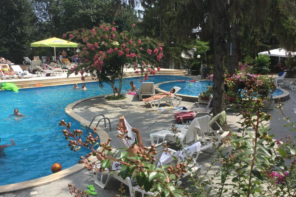Плажът е на 250 метра от хотела. За удобството на гостите има открит басейн. Има и тераса за слънчеви бани.