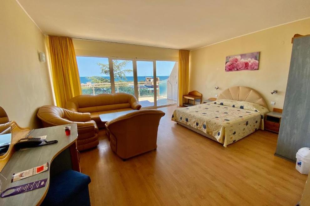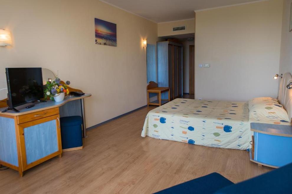 Хотелът има 7 етажа и разполага с 232 двойни стаи. Стаите са оборудвани с климатична инсталация, директен телефон, сателитна телевизия, мини бар. Има стаи с гледка директно към морето или към парка.
