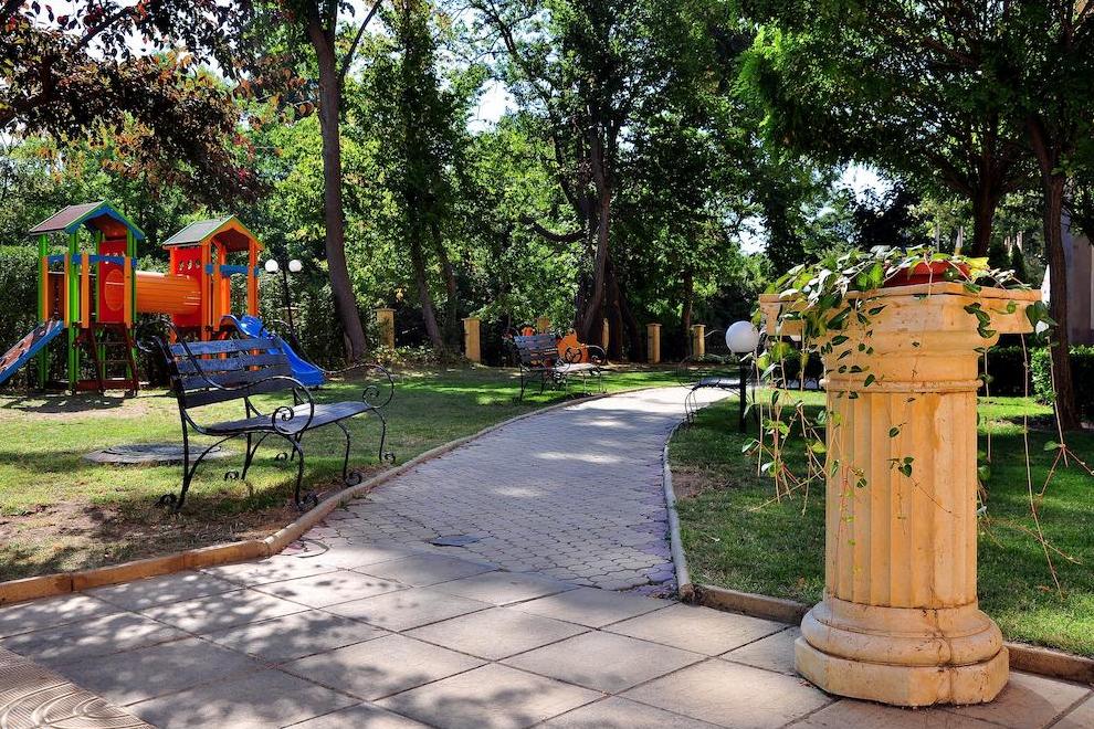 Парк, открит плувен басейн, джакузи, сауна, фитнес, тенис на маса, билярд, велосипеди.