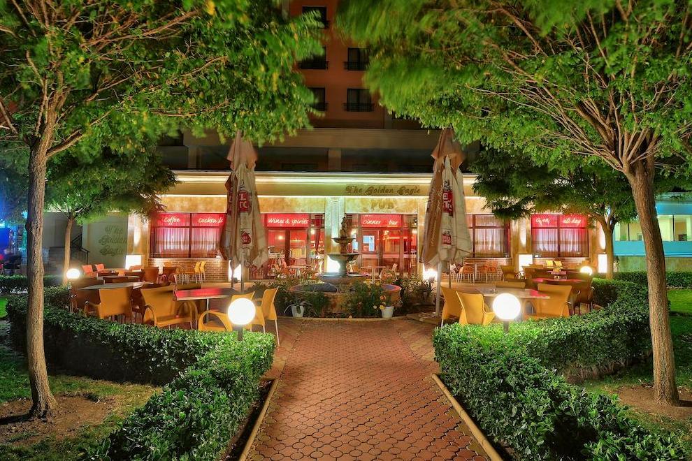 Основен ресторант на шведска маса 120 места + 30 места на открито, лоби бар, бар на басейна, бар в ресторанта. При заявка и срещу заплащане на рецепцията, в помещението за настаняване се осигуряват кухненска посуда и прибори.