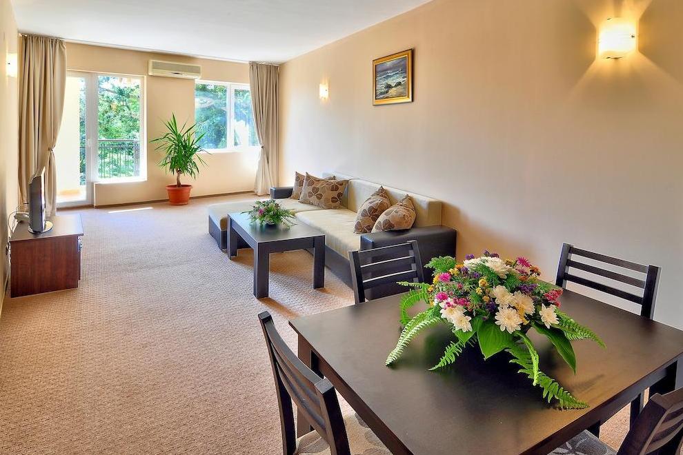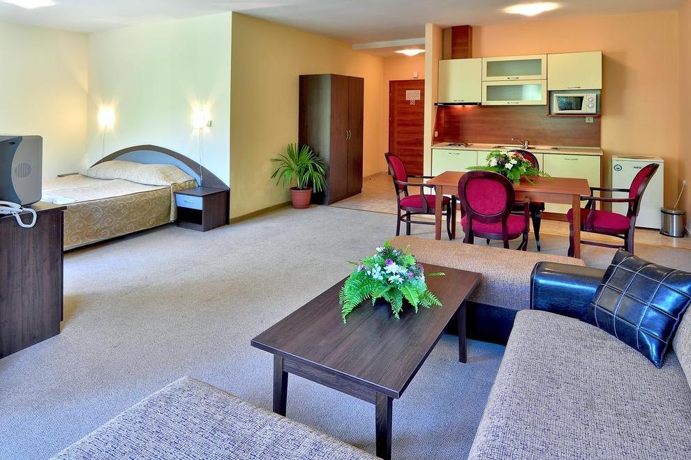 Хотелът посреща гости в 61 едностайни апартамента, 19 студиа, 5 двустайни апартамента. Стаите имат кът за сядане, климатик, телевизор, тераса, телефон, кафемашина, хладилник. Апартаментите са с една или две спални и отделен хол, кът за сядане и кът за хранене, климатик, тераса, телефон, телевизор, баня с вана или душ, кухня с микровълнова печка, кафемашина, хладилник. Стаите се почистват ежедневно, спалното бельо се сменя веднъж на 3 дни.