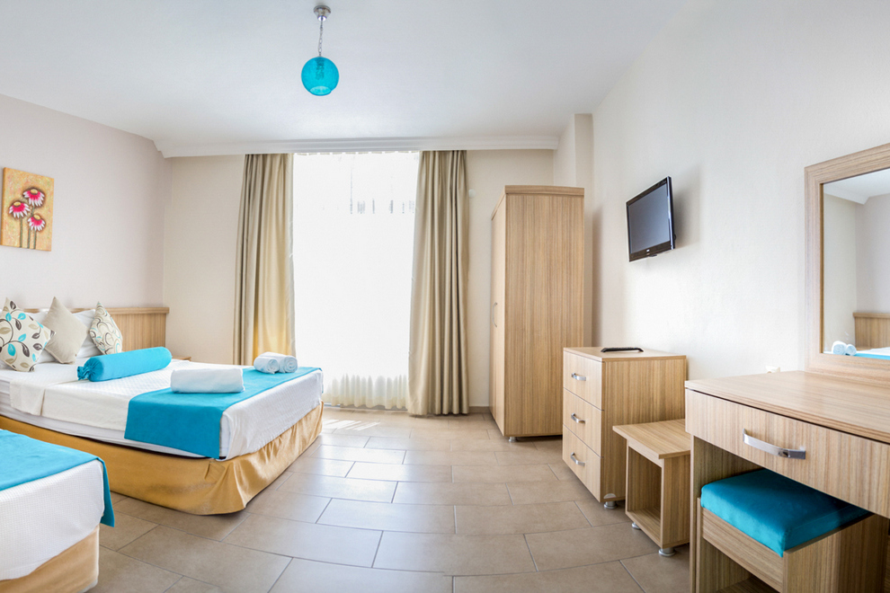 Хотелът е напълно обновен през 2013 г. и предлага на своите гости комфортно и релаксиращо преживяване. Посреща гостите си в 50 климатизирани стаи, от които 46 стандартни (с изглед море или изглед към басейн) и 4 фамилни стаи. Стаите и апартаментите са обзаведени с модерни мебели от дърво с приятна декорация. Имат телевизор с плосък екран, самостоятелна баня с душ/вана, кът за сядане, удобства за приготвяне на чай и кафе и малък хладилник. Стаите се почистват всеки ден, спалното бельо и кърпите се сменят два пъти седмично.