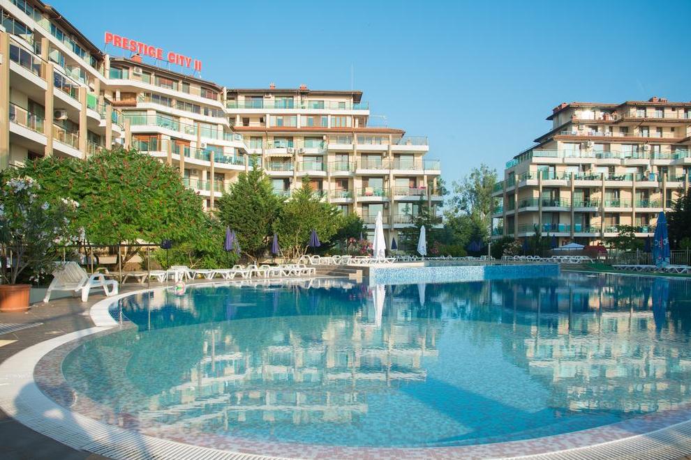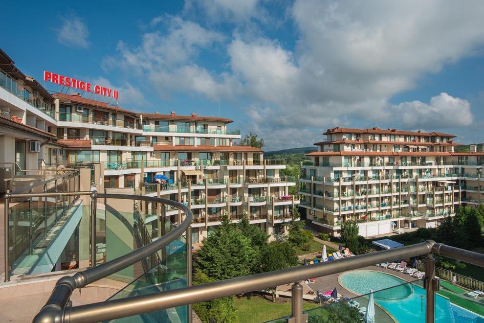 „Престиж Сити ІІ“ включва 174 апартамента – 15 студия, 98 едноспални , 59 двуспални и 2 триспални апартамента , разпределени между 5 жилищни и 2 мансардни етажа в двата корпуса. Всички помещения са с качествена мебелировка, която гарантира максимален комфорт на всички гости. Част от едноспалните и почти всички двуспални апартаменти разполагат с великолепна морска гледка.
