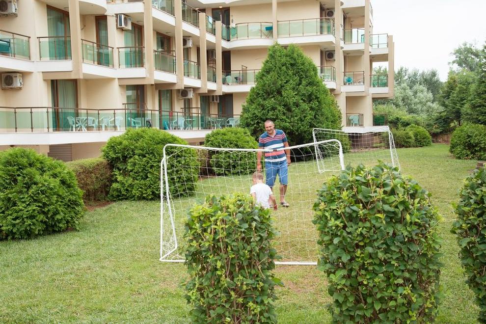 В комплекса има общо 6 панорамни асансьора, 24-часова рецепция и лоби бар, ресторант, супермаркет, външен басейн – за възрастни и деца, детска площадка, Зона за релакс, денонощна охрана, паркоместа, конферентна зала, закрит детски кът.