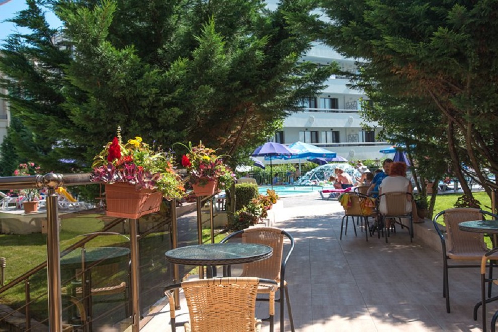 Хотелът има градина с открита тераса към ресторанта, лоби бар и бар-басейн.