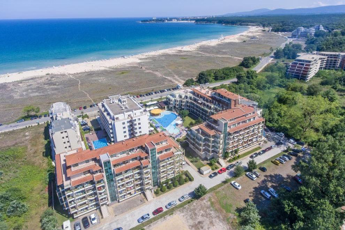 Хотелът се намира край плаж с ширина 4,5 км. Предлага и удобството на открит басейн и тераса за слънчеви бани.