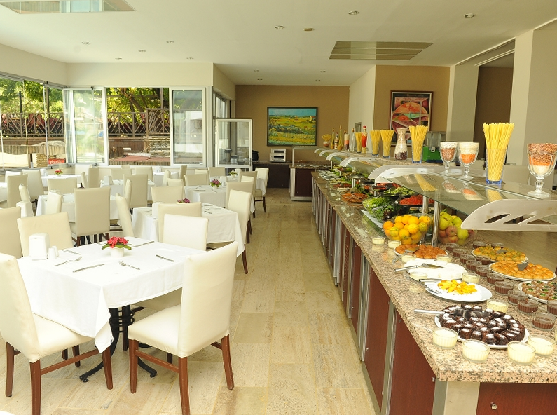 Mar Bas Hotel разполага с 1 основен ресторант, 1 а'ла карт ресторант - предлагащ европейска кухня, 1 бар.