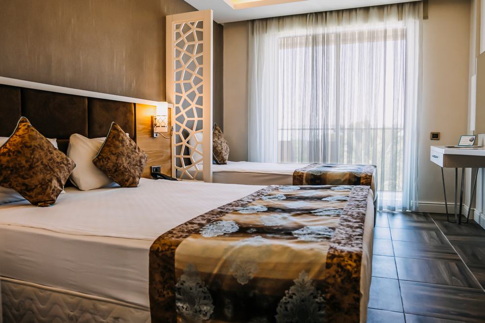 Хотелът се намира в село Белдиби, на 35 км от летище Анталия. Територията на хотела е разделена от път на две части (жилищната сграда се намира срещу морето, на около 150 м). Последна реновация е направена през 2015 г.