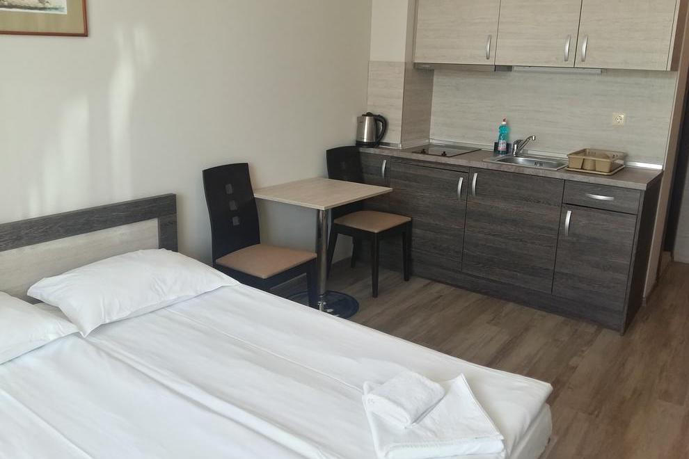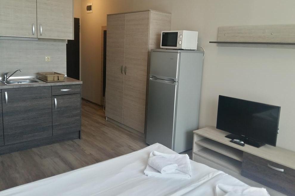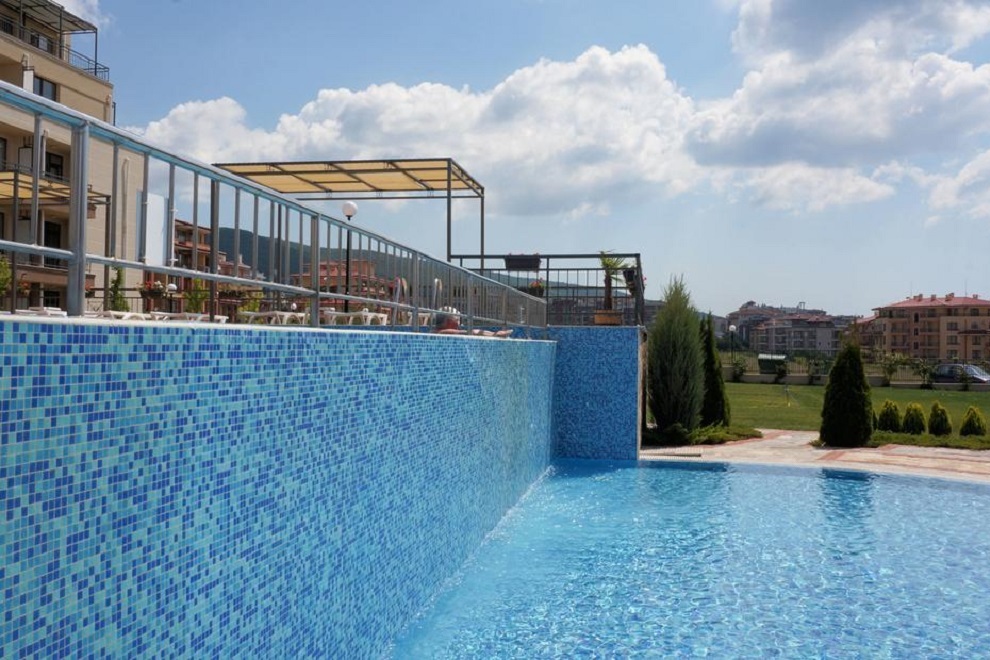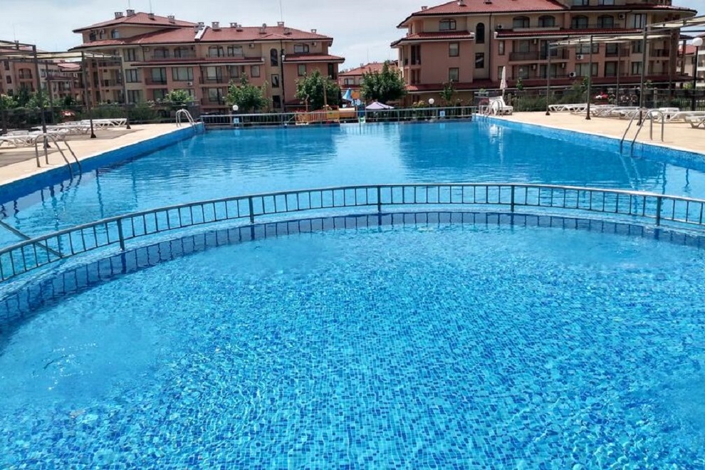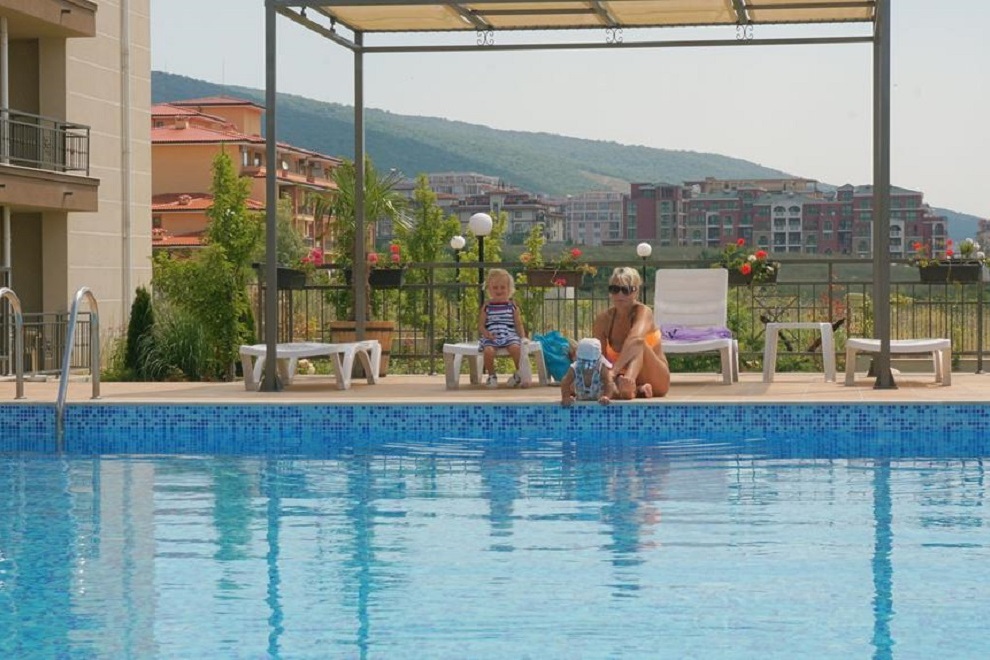 Плажът е само на 150 крачки от комплекса. За удобство на гостите има басейн с детска част и тераса за слънчеви бани.