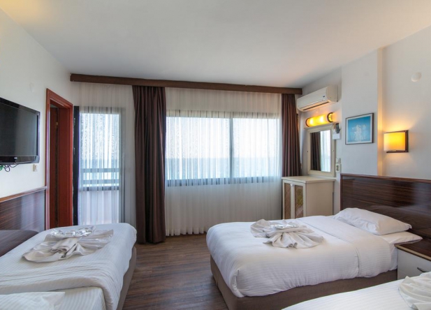 Хотелът разполага общо с 60 стаи. Всяка от модерните стаи разполага с климатик, LCD телевизор със сателитни програми и спортни канали Lig TV, както и балкон с изглед към Дамския плаж. Ежедневно подреждане на стаята.