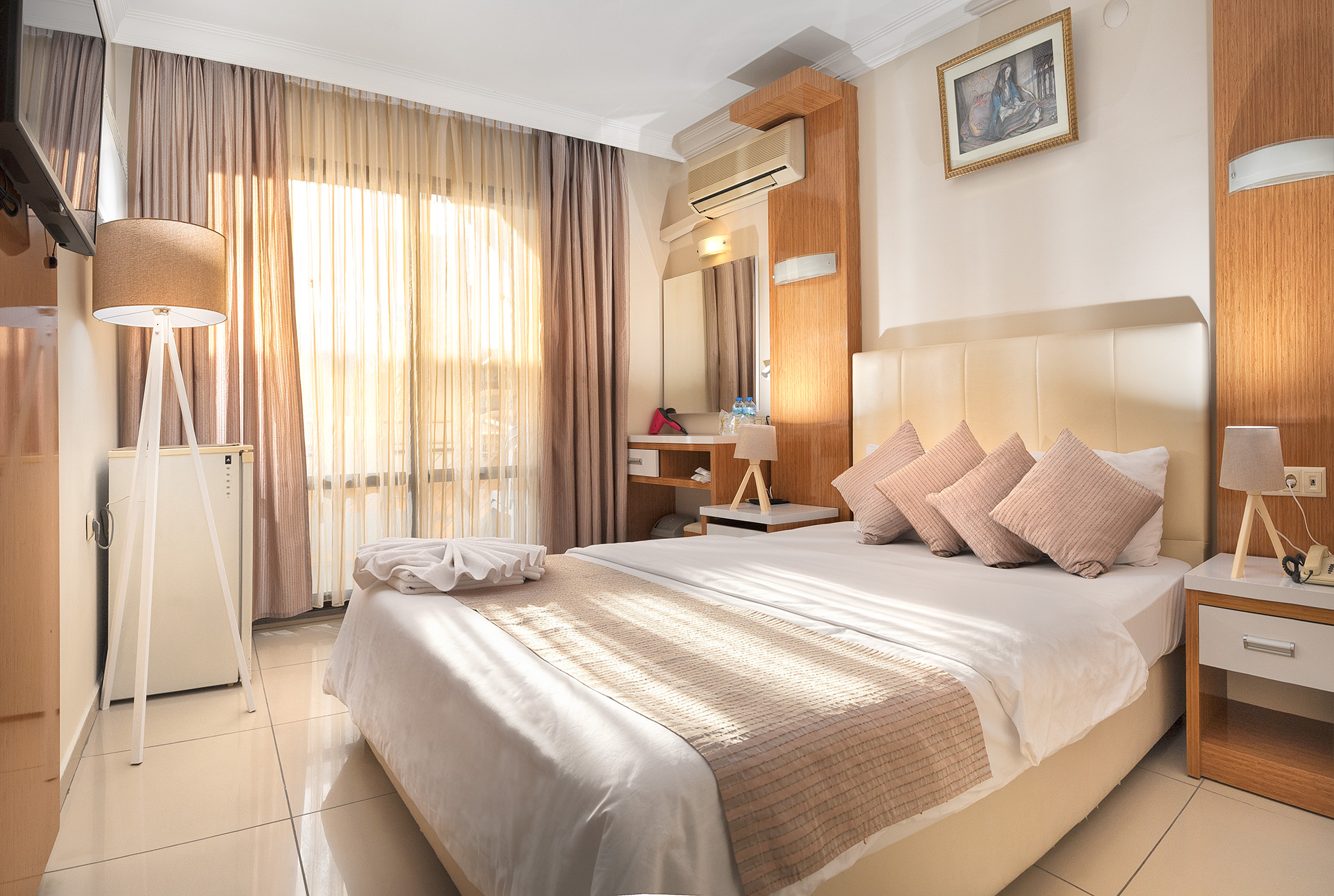 Стаите в хотела разполагат с индивидуален климатик, душ, сешоар, телевизор, телефон, мини бар (платено), сейф (на рецепцията, платено), подова настилка - мрамор, балкон, безжичен интернет - безплатно. Почистване на стаята - ежедневно, смяна на спалното бельо - 3 пъти седмично, room service – платено.