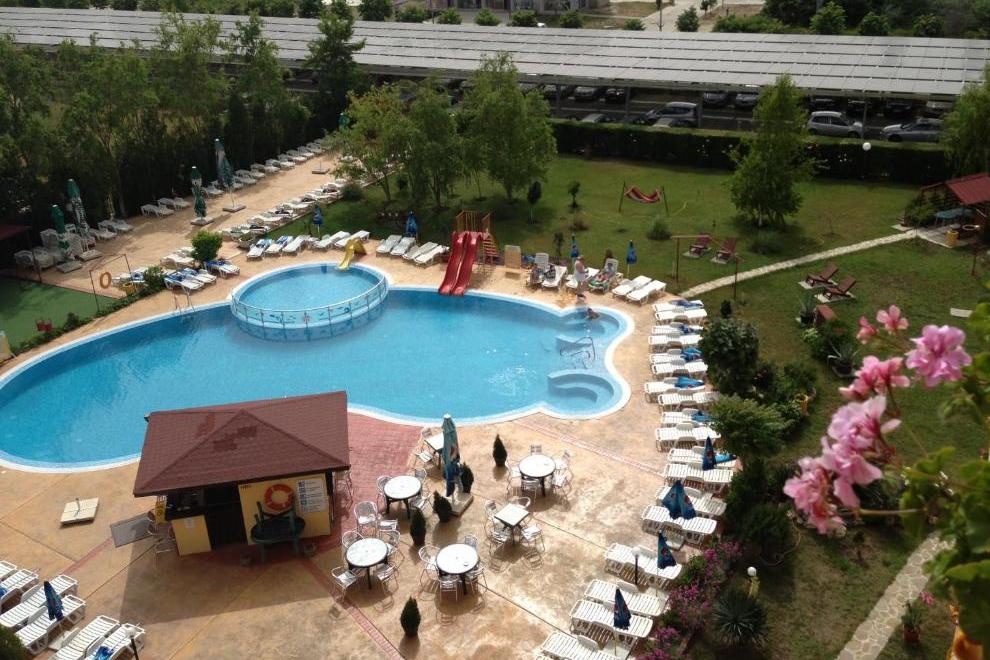Плажът е на 250 м от хотела. На разположение на гостите е открит басейн със сладка вода, с детска част, заобиколен от слънчеви тераси и добре поддържани градини.