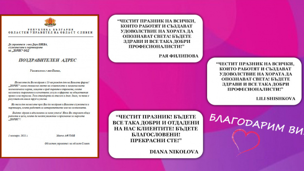 ЧЕСТИТ ПРАЗНИК! Бъдете все така добри и отдадени на нас клиентите! Бъдете благословени! Прекрасни сте!